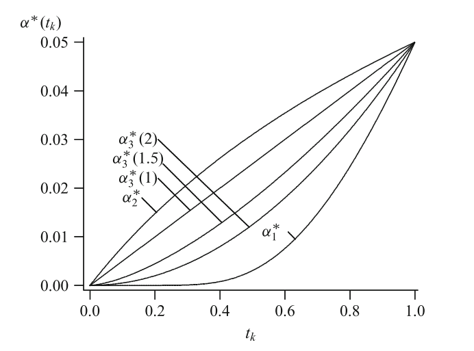 Examples of \(\alpha\)-spending functions