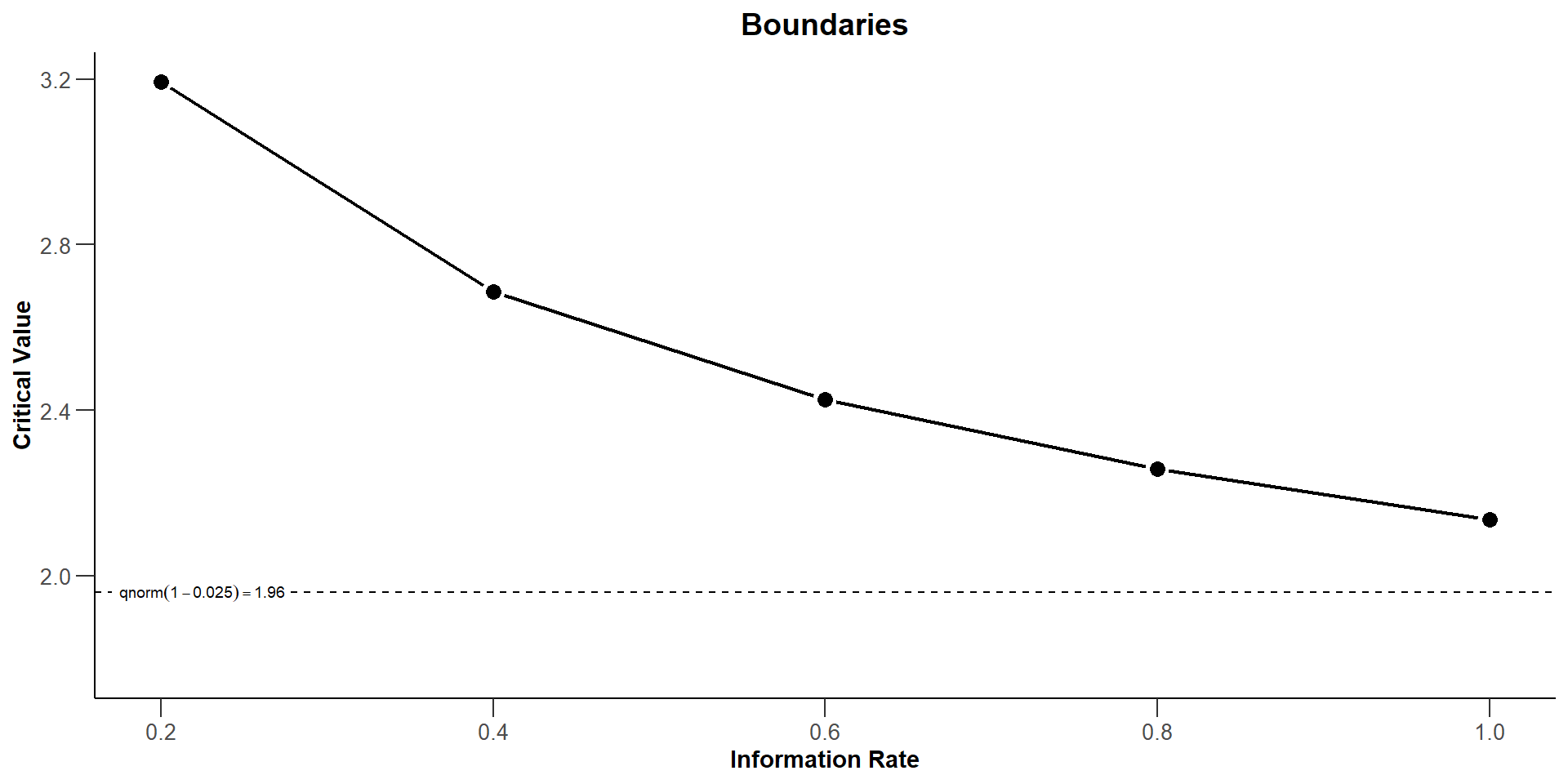 | Efficacy boundary (z-value scale) | 3.194 | 2.686 | 2.427 | 2.259 | 2.136 |