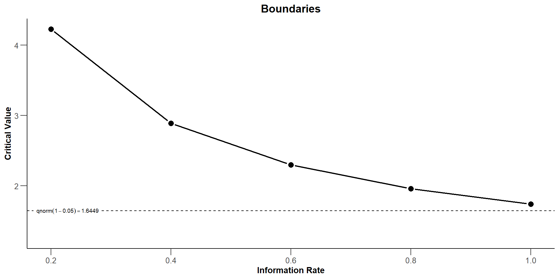 rpactSequential analysis with a maximum of 5 looks (group sequential design)
